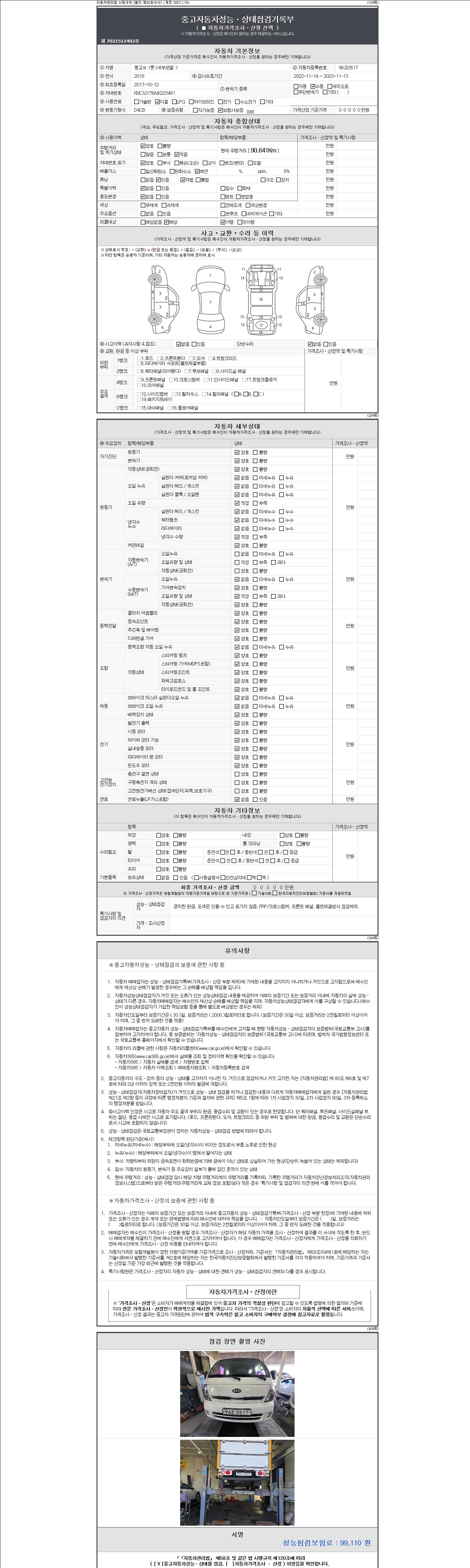 | 주행거리 | 90,578 km | 차량번호 | 96조0517 | 사고유무 | 성능기록부 참조 | 제시번호 | 제 2147483647 호 |